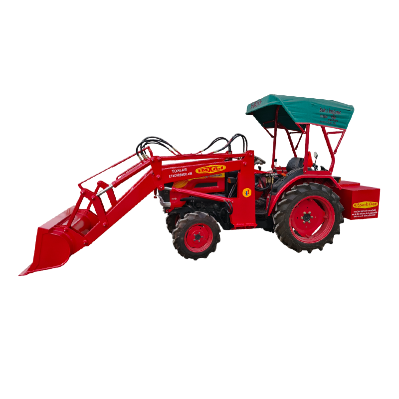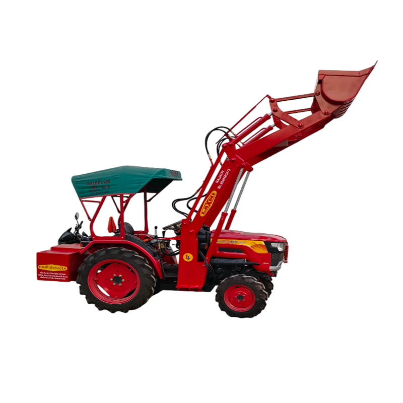 Loader attachment used with a light weight use range of tractor 15 to 75 HP capacity.